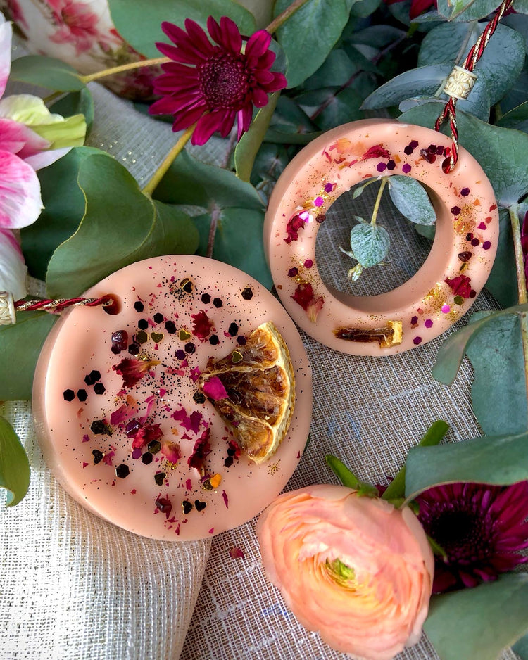 Plongez dans l'élégance olfactive avec nos « Suspensions Parfumées », délicatement confectionnées avec de la cire de soja parfumée et ornées de fleurs séchées. Accrochez ces œuvres parfumées à n'importe quel endroit de votre choix pour une décoration enchanteresse qui embaume subtilement votre espace de délicieuses fragrances.