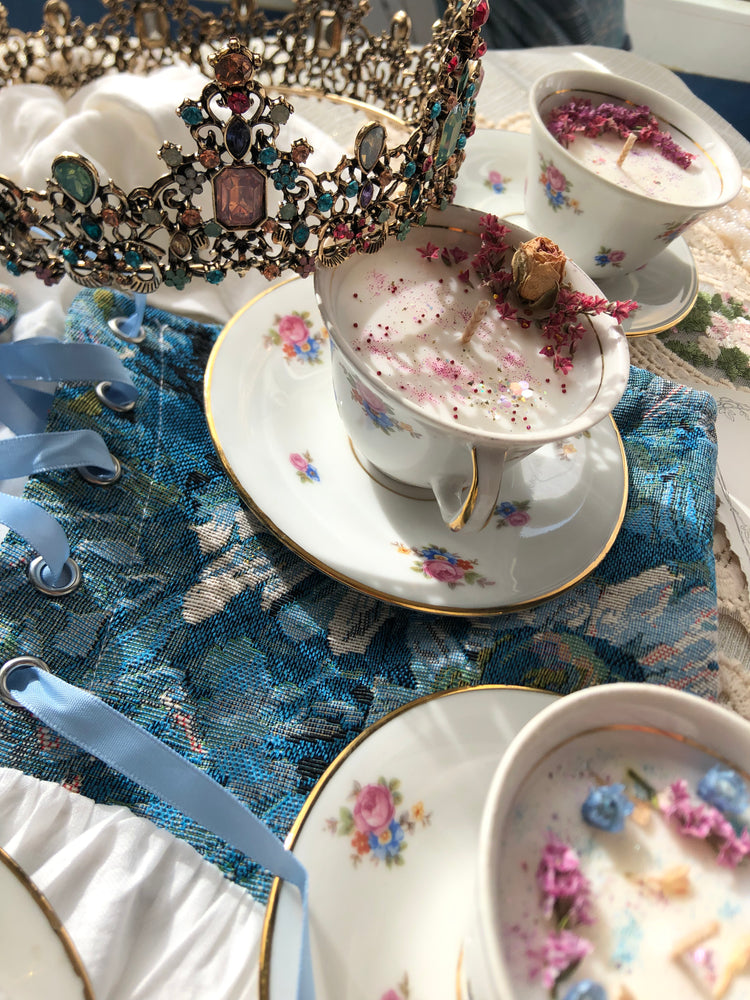 Bougie coulée dans des tasses en porcelaine chinées. Une touche vintage, romantique et...